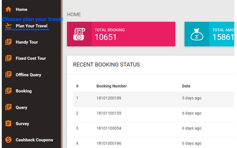 First you click on Plan my Travel. Then you put your client’s travel date, Pick up and Drop Point (in case you are taking a quote for an itinerary. Then you will have to fill in the total no. of Travelers like Total no. of Adults, Total No. of Child & Total No. Infants. Then you will have to put in your desired Destinations. Rest Process is self-explanatory or you’ll find more question for the further process that needs to be done.